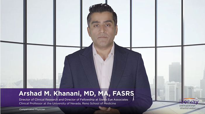 Hi, I’m Arshad Khanani, Director of Clinical Research and Director of Fellowship at Sierra Eye Associates, and Clinical Professor at the University of Nevada, Reno School of Medicine. Today I want to talk to you about IZERVAY™ (avacincaptad pegol intravitreal solution): a tool that we can use to protect patients’ healthy retinal cells for longer by slowing down the progression of GA.